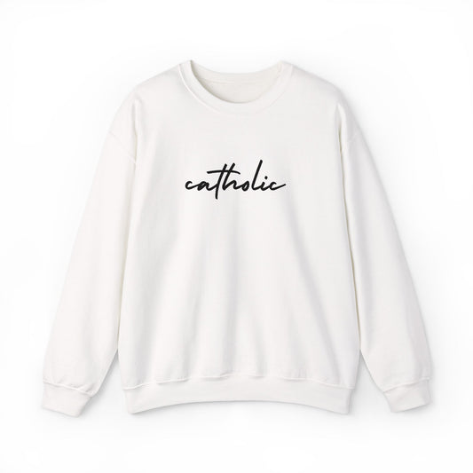 catholic Script Embroidered Crewneck Sweatshirt - White Stitches